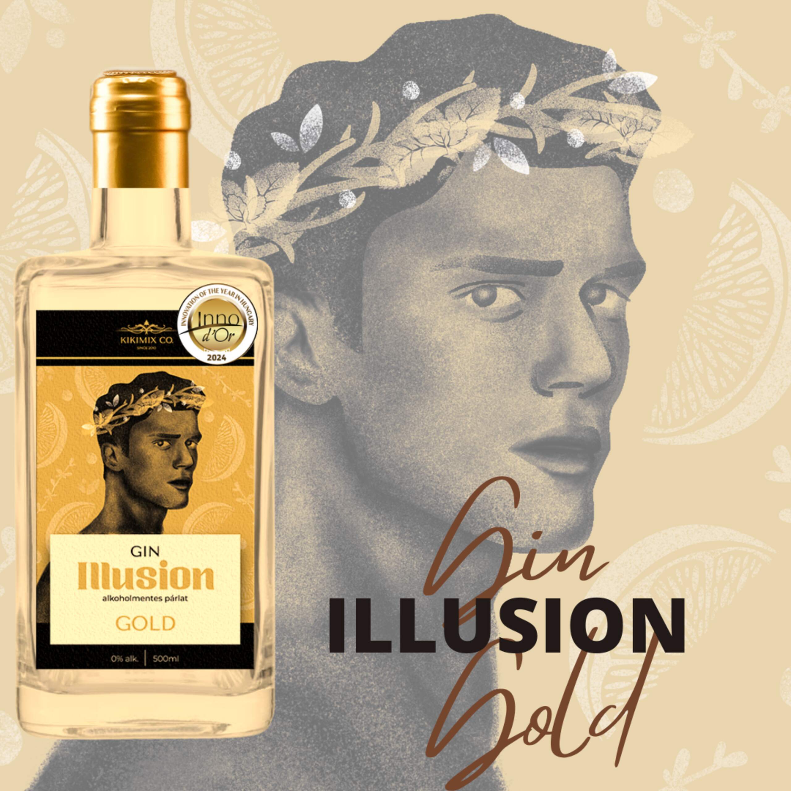 Gin Illusion Gold Edition. A klasszikus London Dry Gin karaktereit rejtettük a palackokba, amelyet aranypehellyel tettünk még izgalmasabbá. A rozmaring, menta, borókabogyó, kardamom mellett megannyi fűszer, citrusok és levendula is helyet kapott az üstben. Klasszikus kisüsti vörösrezes lepárlással készül, ezzel is követve a nagytestvér(Gin-ek) megkívánta hagyományokat. Végül egy teljesen alkoholmentes karakteres ízekkel rendelkező párlatot kapunk, melyet palackozunk. Ízében a karcos, fűszeres ginekre hajaz.